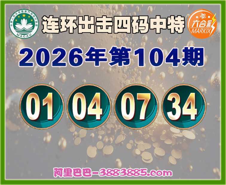 104期:《连环出击》 ♠️四码中特♠️【01.04.07.34】开:01